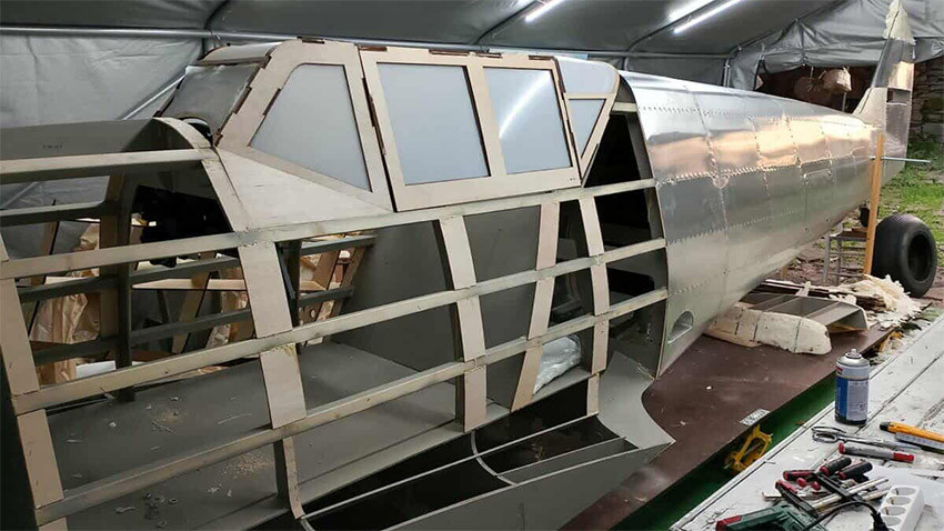 Дървената конструкция изцяло е покрита с алуминиева ламарина, както е и оригиналният самолет. Спазени са и всички надписи.