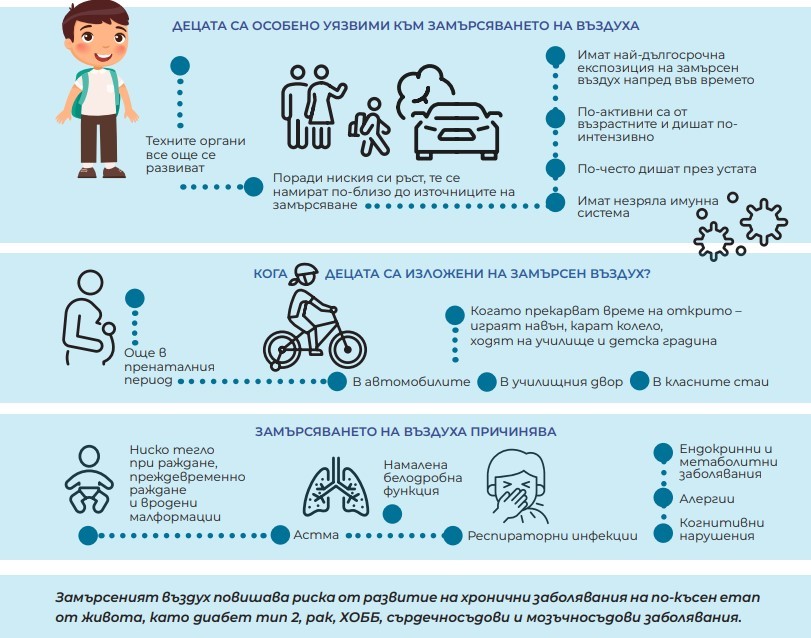 Според данните на Световната здравна организация, замърсяването на въздуха е втората водеща причина за смърт от неинфекциозни заболявания. При децата пораженията са още по-сериозни - от влошена концентрация и хронични дихателни заболявания до по-висок риск от алергии и сърдечно-съдови проблеми.