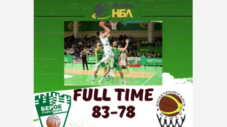 Втора поредна победа от началото на сезона в Националната баскетболна лига записа мъжкият "Берое Стара Загора". Възпитаниците на треньора Даниел Клечков зарадваха своите привърженици с трудна, но важна победа с 83:78. Дешон Парсънс завърши с 20 точки и..
