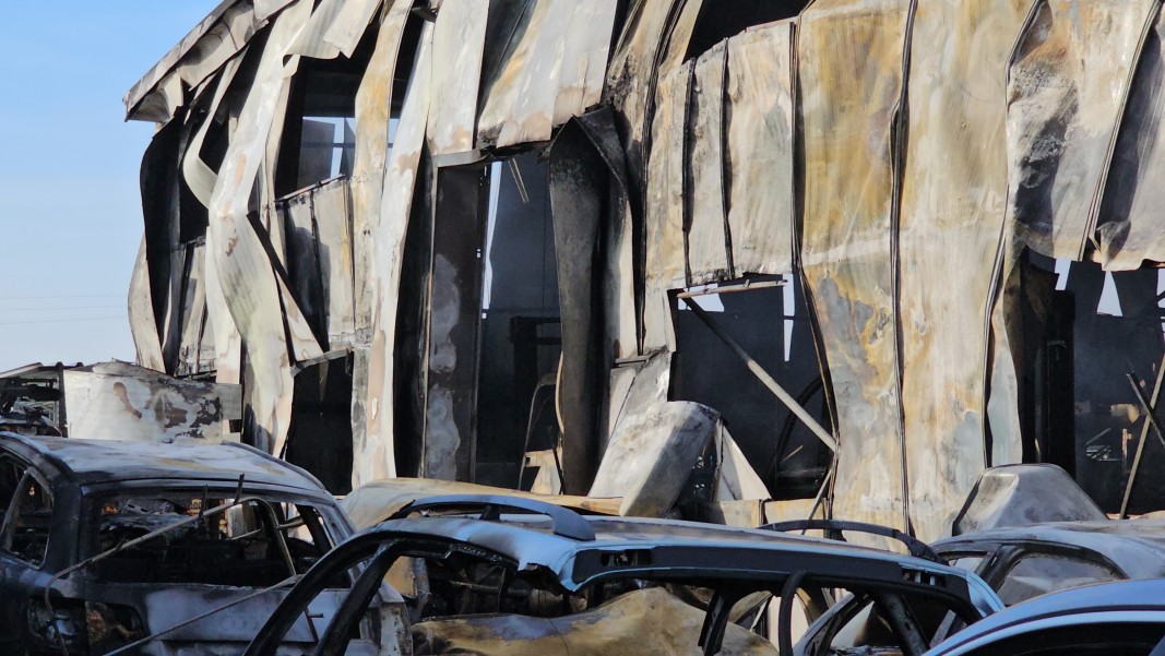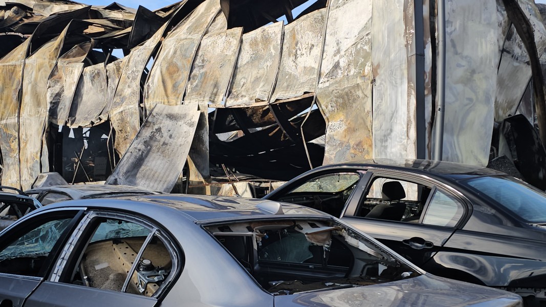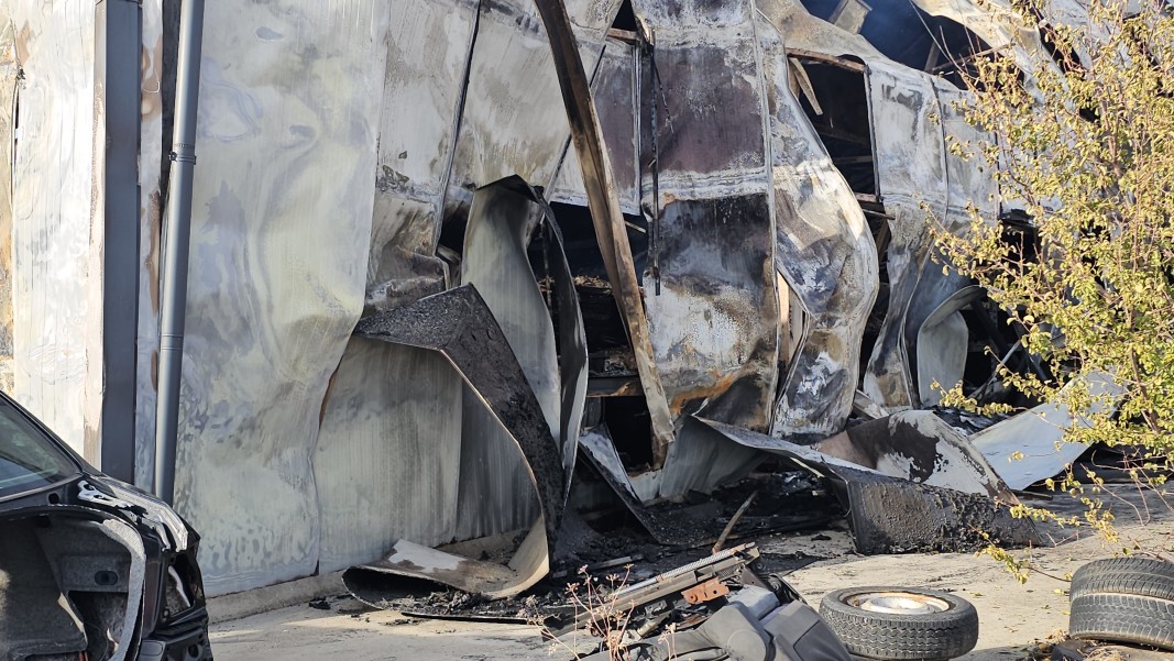 Високата температура на огъня е унищожила почти изцяло складовата база на фирмата. Паднала е покривната конструкция, а складираните авточасти са унищожени. Изпълняващият длъжността началник на пожарната в Сливен Росен Георгиев обобщи ситуацията след огледа сутринта.