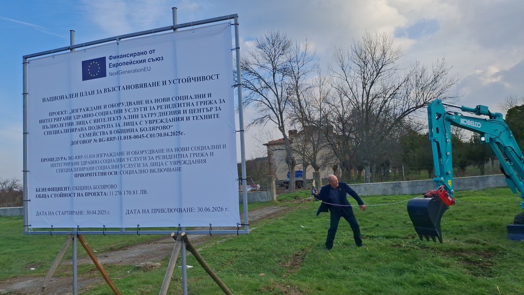 Община Болярово започна изпълнението на проект „Изграждане и оборудване на нови социални и интегрирани здравно-социални услуги за резидентна грижа за пълнолетни лица с интелектуални затруднения и център за специализирана подкрепа за лица с увреждания и техните семейства в община Болярово“. Проектът се финансира по Националния план за възстановяване и устойчивост с договор № BG-RRP-11.018-0045-C01 от 30.04.2025 г. и е с обща стойност 11 276 170,81 лв..