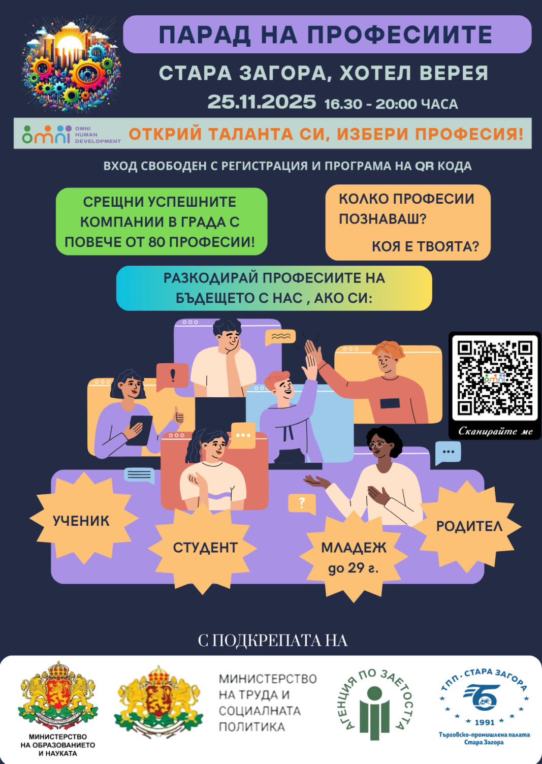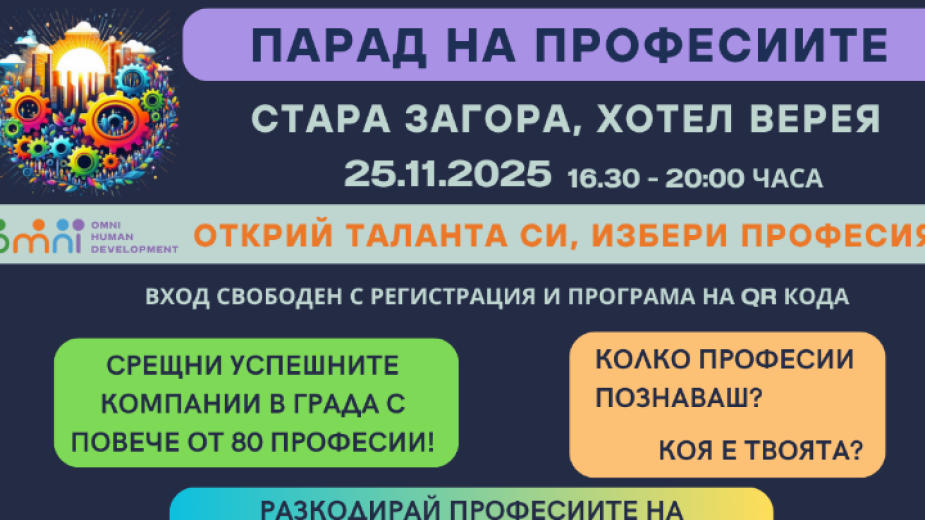 "Участват над 20 компании, в партньорство с професионалните гимназии от Стара Загора и Казанлък. Представени са разнообразие от професии както в ключови сектори и модерните компютърни системи и технологии, разработка на софтуер и роботика", съобщи Васка Бакларова от организаторите.