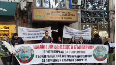 Млади медици излязоха на протест Министерството на здравеопазването с искания за гарантирано достойно заплащане и нормални условия на труд. Протестиращите, облечени в черно, тръгнаха на "траурно" шествие, което премина по столичния булевард "Цар Освободител" и се насочи към Орлов мост, предаде БНР. Младият медик д-р Павло Славов: България има..