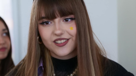 Двама от зрелостниците (които ще кандидатстват актьорско майсторство и са част от училищния театър) Анна-Мария Желязкова и Катерина Стоянова от 12 б клас представиха рецитал по стихове на техни съученици, участници в изложбата.