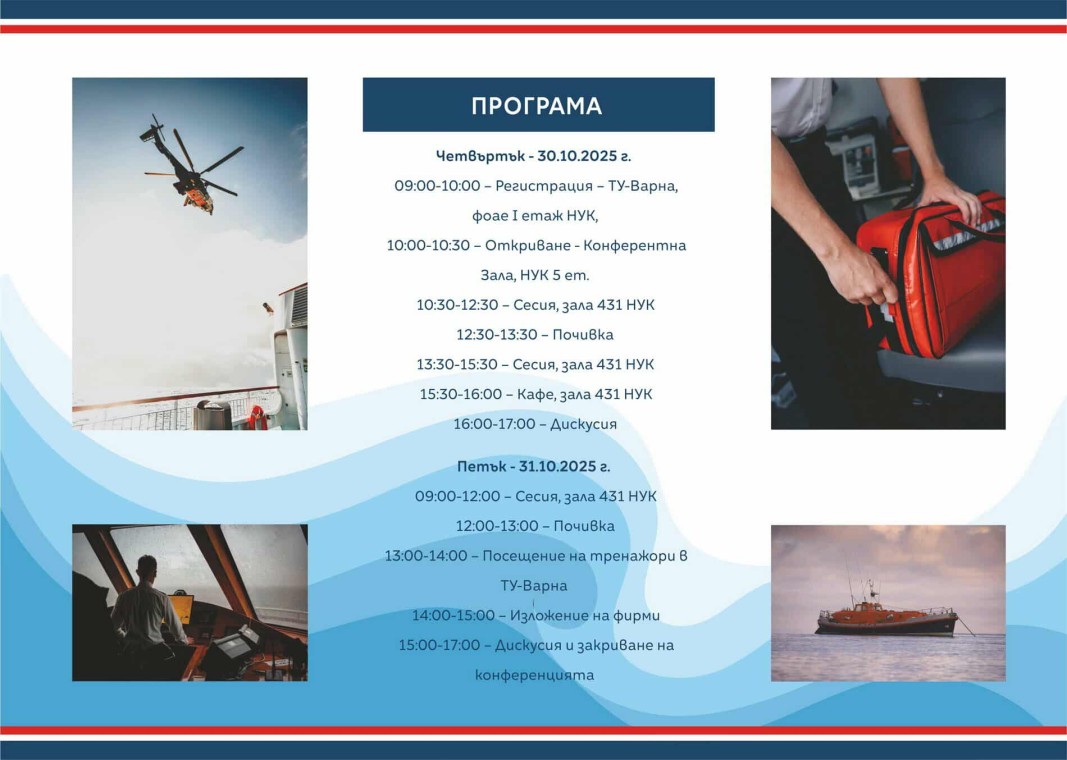 Техническият университет във Варна е домакин на двудневна научно-приложна конференция "Корабоплаване, търсене и спасяване на море". Форумът ще се проведе на 30 и 31 октомври, четвъртък и петък, а официалното му откриване ще бъде от 10 часа в Конферентната зала на пети етаж на НУК.