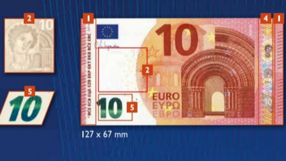 На специално изготвен плакат са обозначени най-важните защитни елементи на евробанкнотите.