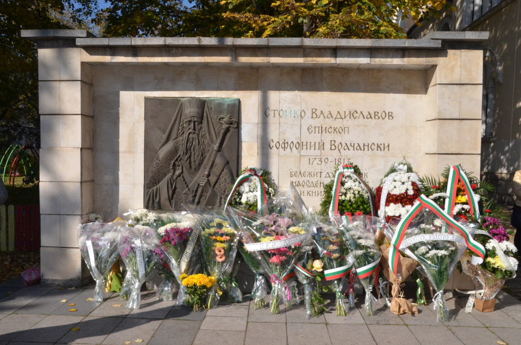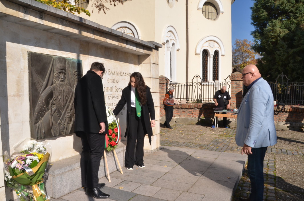 Цветя и венци пред паметника на "Софроний Врачански" поднесоха общественици, представители на различни институции, директори на видински училища и градини, ученици, учители, културни дейци и граждани.